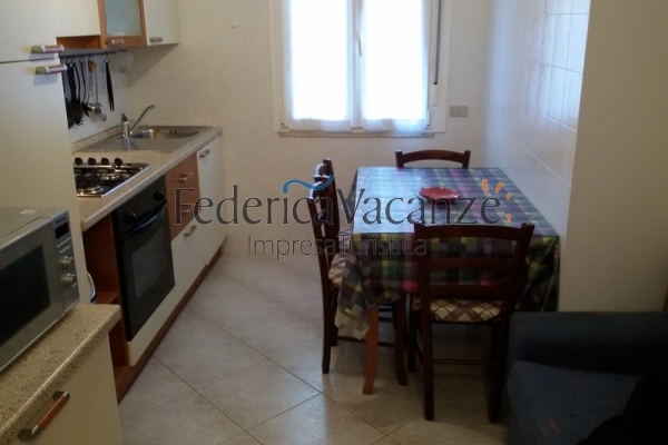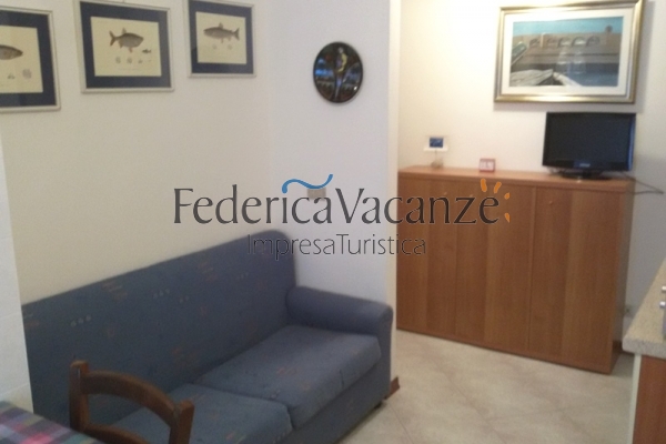 La maison se trouve près des magasins à 200 mètres de la mer. L’appartement (au 6eme étage avec ascenseur), idéal pour familles de 4-5 personnes, est composé par séjour avec coin cuisine, 1 chambre double, 1 chambre avec lit simple et lit superposés, salle de bain avec douche, un petit balcon avec vue sur la pinète. Il est installé d’une façon confortable avec climatisation, télévision, four et machine à laver. Un chien de taille petite est bienvenu. La place pour la voiture n'est pas garantie.