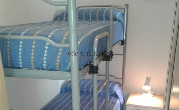 L’abitazione è composta da soggiorno con angolo cottura a vista e divano letto per due persone, una camera matrimoniale, una cameretta con castello, un bagno con doccia a pavimento, un grande balcone abitabile con tavolo e sedie per mangiare all’aperto e guardare il mare. E’ fornita di aria condizionata, forno, lavatrice, un posto auto nel cortile condominiale (non assegnato e ad esaurimento posti).
